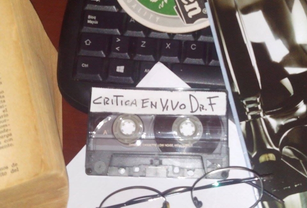 Debajo de unas cajas de Pizza Hut (cosecha 98), acumuladas sobre el escritorio de nuestro escritor estrella Ulises Picoli, encontré un cassette rotulado como “Crítica en vivo Dr. F 1997“.